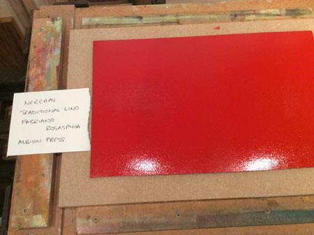Rolling out with soft Japanese roller (used for all inking in the tests) |