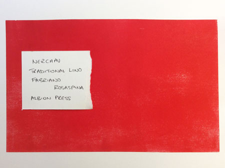 Slightly disappointing coverage on paper compared to ink’s appearance on the lino |