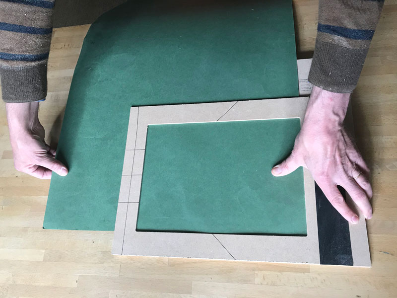 The MDF insert can be replaced with strong cardboard or card as an alternative if you wish. However, the insert needs to be thick enough to raise the lino to the height of the frame around it so that the lino is proud of the base frame (as it is when using the MDF insert). The lino can be attached to the insert using carpet tile adhesive if you want a permanent bond, or strong double sided tape if you are hand printing and wish to re-use the insert.