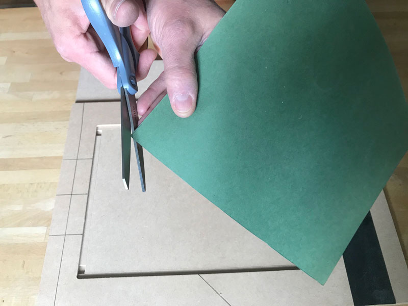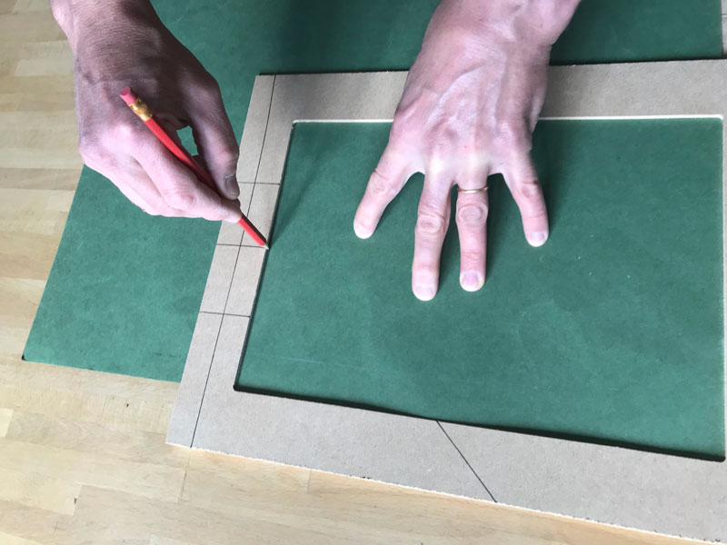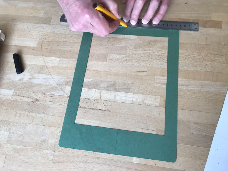 1. Slide your piece of card between the top frame and the base and draw around the inside edges of the frame.