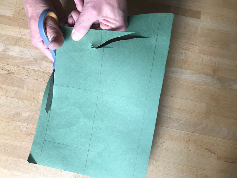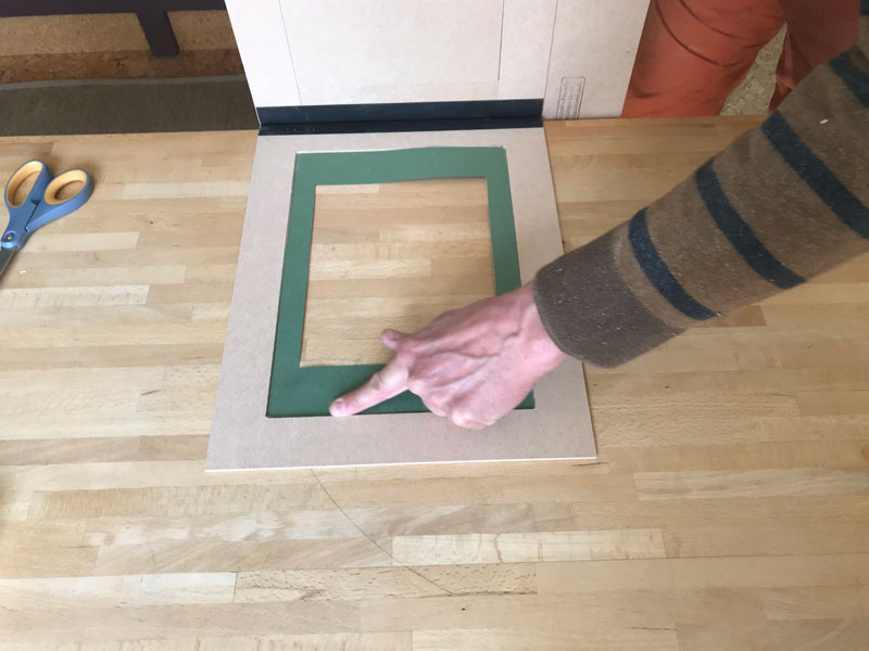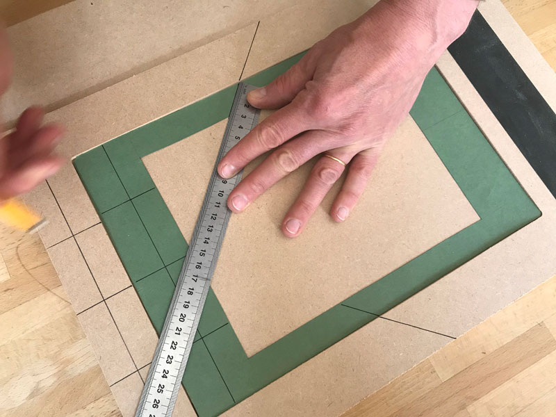 3. Decide how large the hole in the centre of the card needs to be. The hole should be the size of your lino block plus about 5mm ‘breathing space’ around it to allow you to rub the back of the paper right up to the edges of the lino when printing.