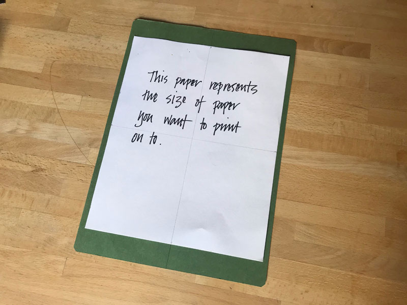 When printing on a press, the top plate or the roller, depending on your type of press, must press the paper onto the surface of the lino. The lino must be the highest area under the printing paper. To ensure this, we advise that you get a piece of mount board (mat board) the same size as the insert and put this into the registration device underneath the insert to raise the lino. Standard mount board is 1.4mm thick, the right height to get a nice clean impression while not putting pressure on the frame.